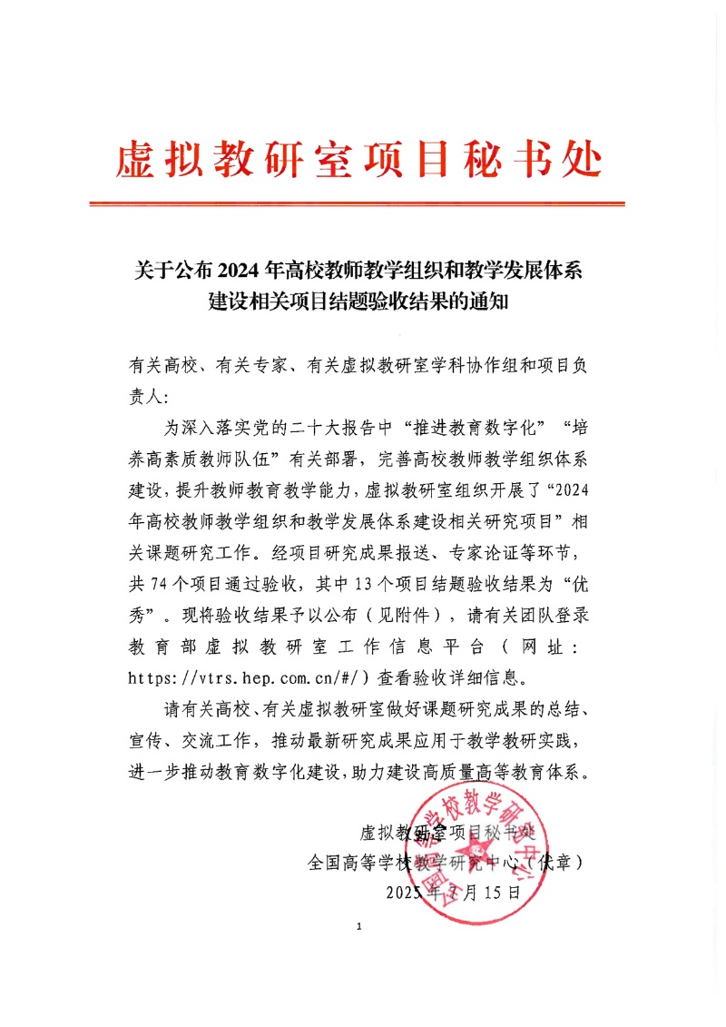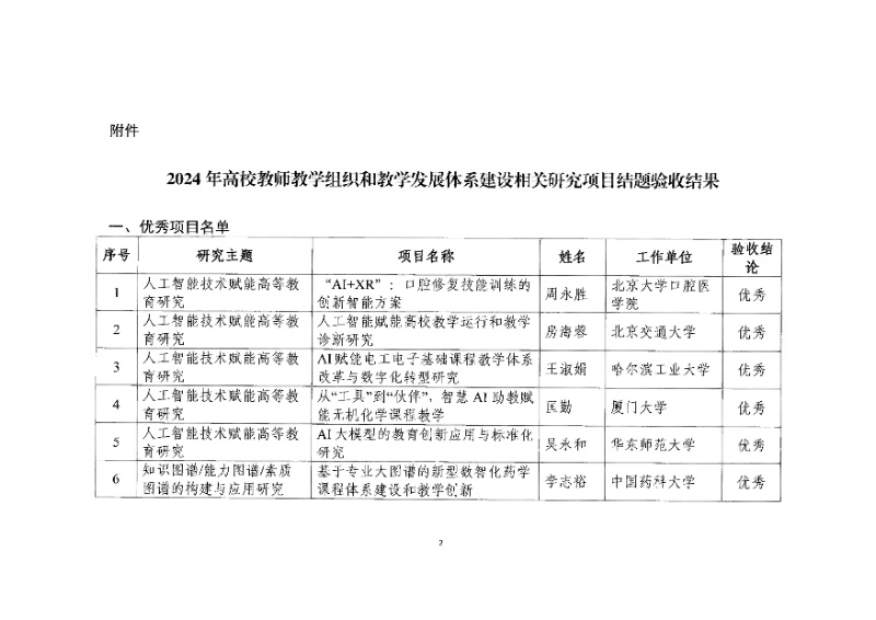 關于公布2024年高校教師教學組織和教學發展體系建設相關項目結題驗收結果的通知