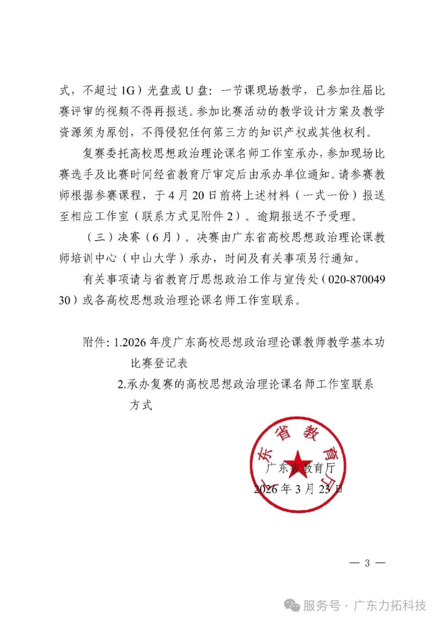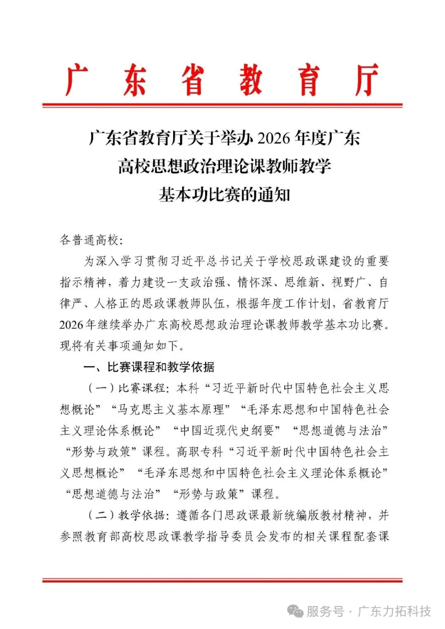 廣東省教育廳關于舉辦2026年度廣東高校思想政治理論課教師教學基本功比賽的通知